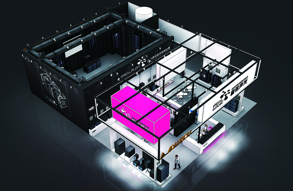 頂美公司設計搭建的睿銘聲光展區(簡稱“睿銘聲光”)面積285平方米。